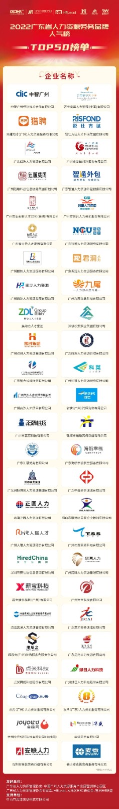 2022广东省人力资源劳务品牌人气榜榜单公布