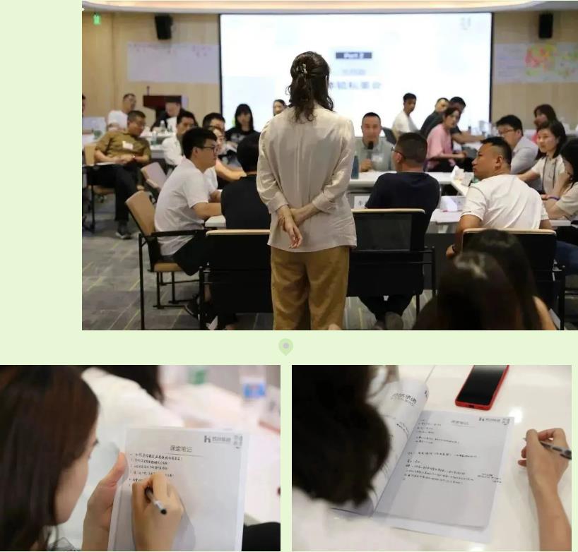 在私董会中,每位管理者都敞开心扉,坦诚相告,各抒己见,互相倾诉心里话,积极讨论如何更好拓客、如何更好管理团队、如何处理亲密关系、如何做好个人职业规划等十几个主题,现场每一个成员脑洞大开,发挥“智慧光芒”,集中智慧提供解决方案,笔记满满,收获满满。