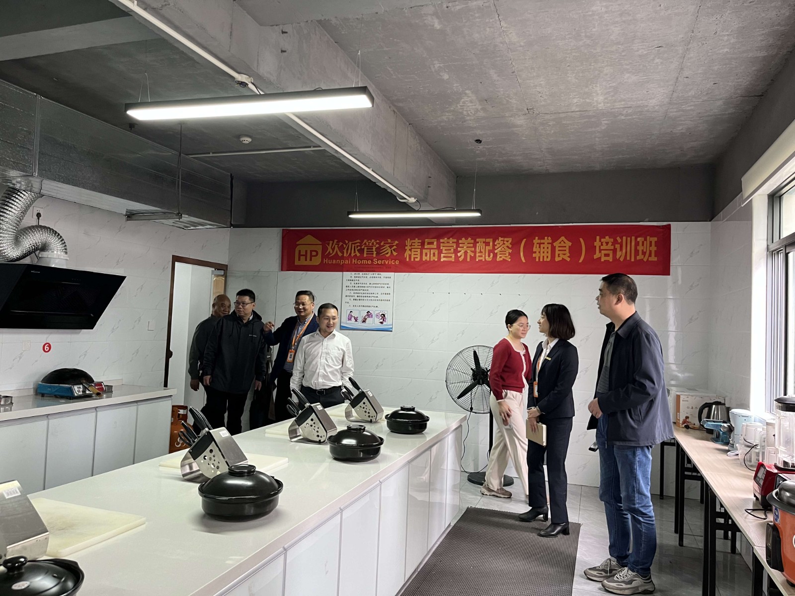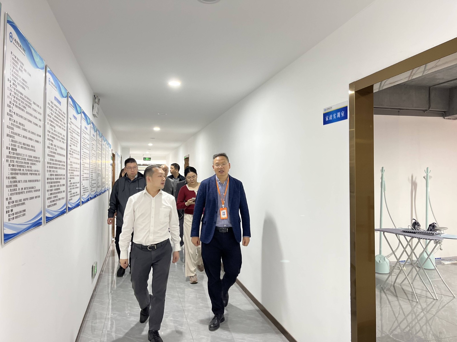 在蒋总的陪同下,邢义波常务副区长一行实地参观了广西欢创及旗下两家全资子公司——广西欢派家庭服务有限公司、南宁市八桂管家职业技能培训学校。蒋总为来宾详细介绍了人力板块业务开展情况、八桂管家职业培训课程的开办、实训教室的建设等情况。