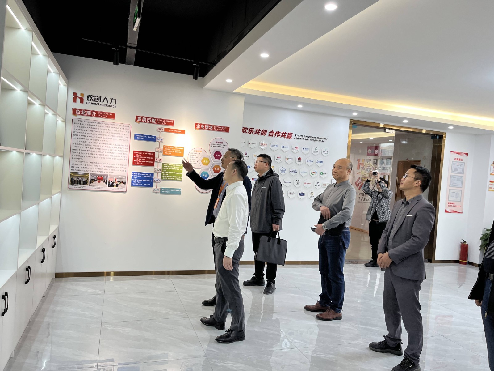 邢义波副区长对广西欢创近年来取得的成绩给予充分肯定。他表示,青秀区政府将一如既往地支持企业的发展,城区政府将会联合相关部门尽力为企业排忧解难,持续做好服务保障工作,精准周到、及时高效做好服务工作,积极回应企业发展诉求,解决企业发展中面临的难题,助力企业实现更好更快发展。希望广西欢创作为南宁市服务业龙头企业,整合资源、放大优势,把企业进一步做大做强,为南宁市人力资源行业发展贡献更多的智慧和力量。